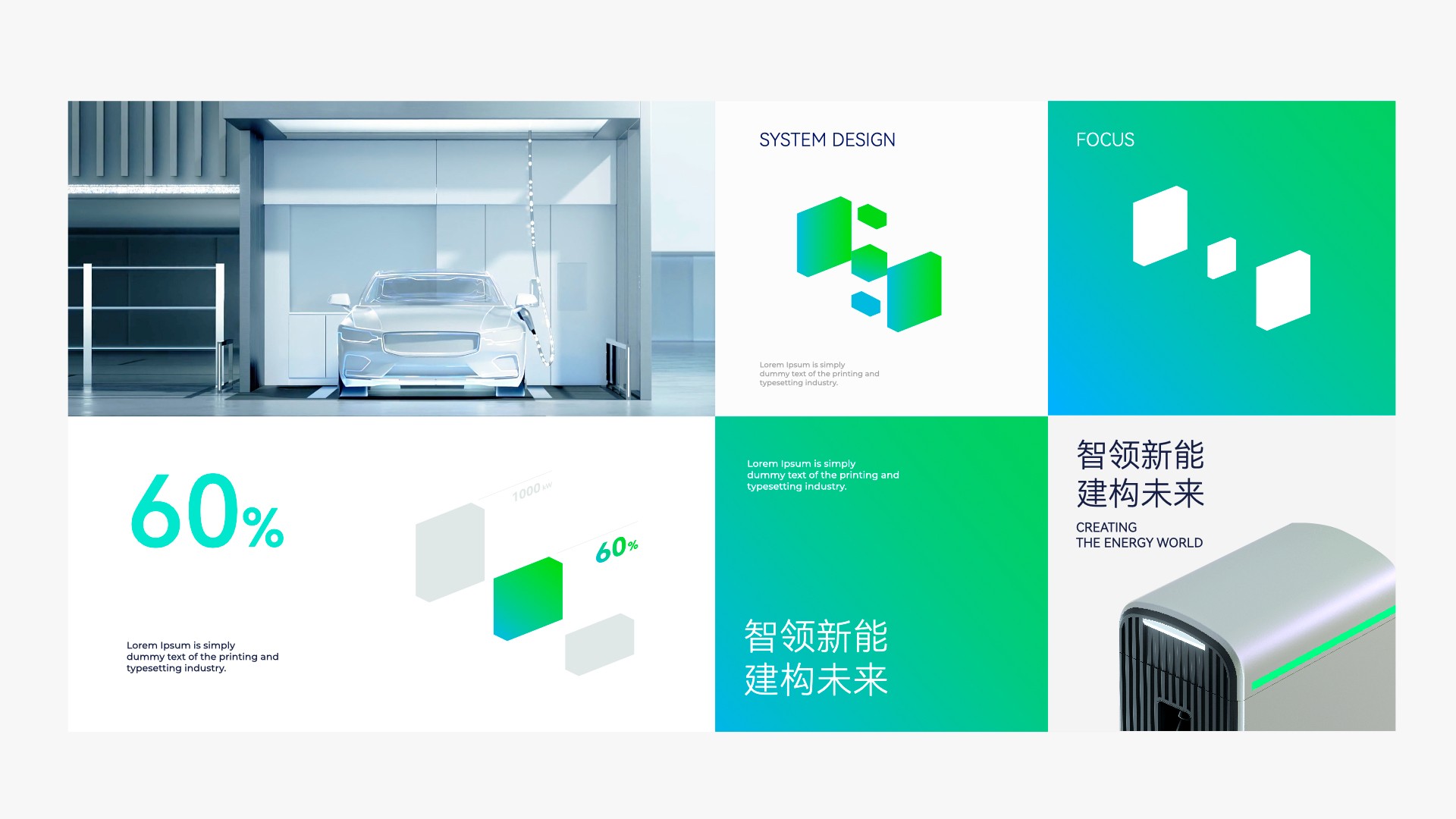 在視覺塑造中,我們從“智領(lǐng)新能,建構(gòu)未來”的概念出發(fā),提出“永續(xù)的能源空間”設(shè)計(jì)想法,從新型儲能的形態(tài)出發(fā),圍繞存儲的載體感與新型儲能的系統(tǒng)環(huán)境感,提出“能源空間”的視覺理念,以此呼應(yīng)能建時(shí)代品牌核心的能力“系統(tǒng)規(guī)劃+能量存儲載體”賦予品牌更多的可能性與創(chuàng)造空間。其中,能建時(shí)代品牌vi設(shè)計(jì)中的標(biāo)識由圖標(biāo)+字標(biāo)的形式構(gòu)成,在能建時(shí)代的圖標(biāo)語言中,我們以“能源、智慧、科技、集成空間”為核心語言進(jìn)行設(shè)計(jì),在設(shè)計(jì)中以能建時(shí)代拼音首字母“N”的結(jié)構(gòu)為基底形成模塊化的構(gòu)成,并形成具備立體感的圖標(biāo)輪廓。在圖標(biāo)的中心,通過左右兩個(gè)模塊的錯(cuò)位交叉形成匯聚的態(tài)勢,以具有系統(tǒng)感的方式結(jié)合字母“E”的清晰識別形成核心特點(diǎn),字母“E”是能源的代表,象征著能建時(shí)代專注儲能科技,為能源發(fā)展提供有效支持的決心。在vi設(shè)計(jì)中色彩的選擇上,以象征著環(huán)保能源的藍(lán)綠色系為主要色彩,使品牌印象具備明確的新能源行業(yè)屬性。在vi設(shè)計(jì)中的輔助圖形系統(tǒng)上我們通過對標(biāo)識設(shè)計(jì)進(jìn)行衍生,形成一套靈活、有創(chuàng)造性的圖形系統(tǒng),通過不同模塊間的組合變化形成不同的圖形視覺,代表了能建時(shí)代規(guī)劃設(shè)計(jì)的能力與全鏈路服務(wù)的特征,賦予了品牌專業(yè)、靈活個(gè)性、智能創(chuàng)新的感受。整體vi設(shè)計(jì)元素相互有機(jī)結(jié)合,為能建時(shí)代塑造出一個(gè)靈活的視覺生態(tài)系統(tǒng),使品牌具備明確的個(gè)性表達(dá),形成專屬于能建時(shí)代的品牌視覺體系,為能建時(shí)代品牌領(lǐng)先性的表達(dá)打下基礎(chǔ),也希望通過強(qiáng)識別的品牌視覺體系幫助能建時(shí)代品牌在行業(yè)中更有效的發(fā)聲,形成獨(dú)樹一幟的品牌印象,建立品牌影響力。
